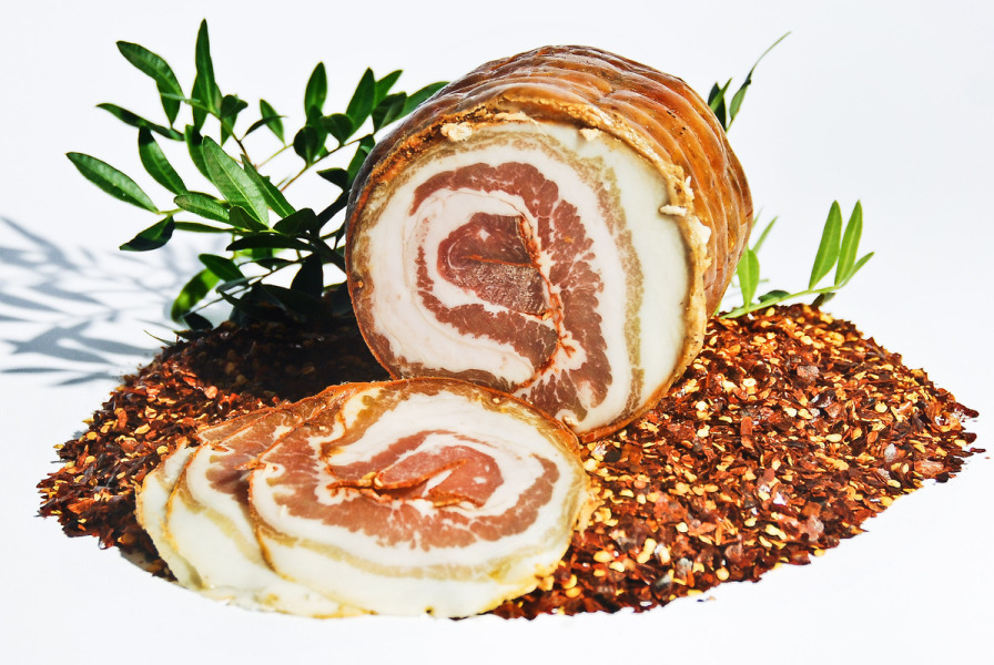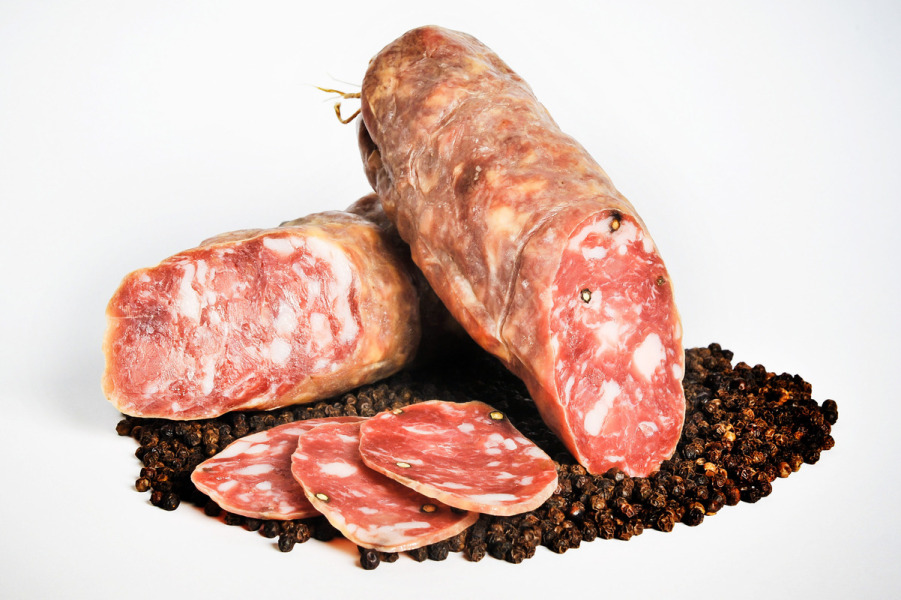 - Ingredienti: suino, sale, vino cotto, aromi naturali, spezie, antiossidanti E300, conservanti, E252-E250, NON CONTIENE ALLERGENI